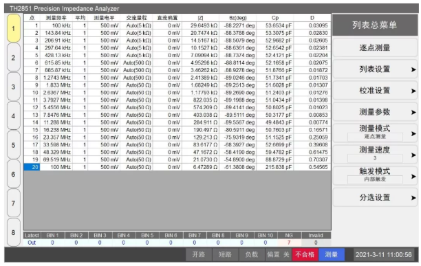 可以最多設(shè)置 1601 點(diǎn)的列表掃描,每個(gè)點(diǎn)可以單獨(dú)設(shè)置測(cè)試頻率、測(cè)試電壓、直流偏置等測(cè)試條件 。