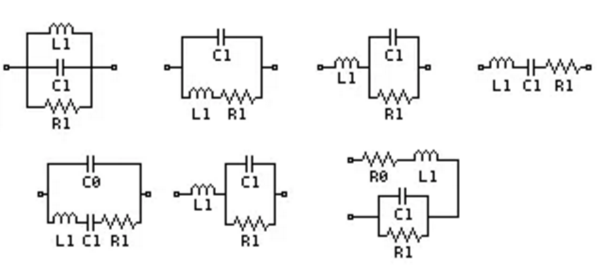 現(xiàn)實(shí)生活中不同類型的器件可以被等效成簡(jiǎn)單的三參數(shù)四種模型、四參數(shù)三種模型的阻抗器件,等效電路分析測(cè)試功能提供了 7 種基本的電路模型用于等效這些器件。