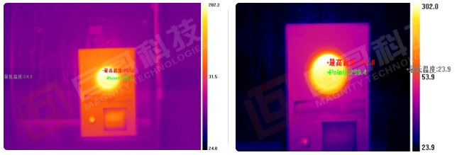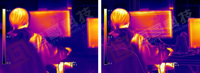左圖為傳統(tǒng)熱像儀拍攝 ,右圖為MAG-AI系列智能熱像儀拍攝