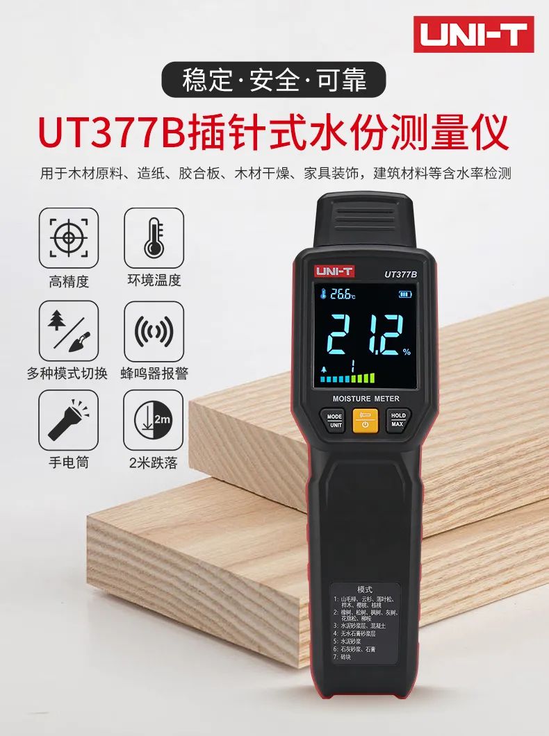 多場(chǎng)景適配,操作更靈活 | UT377B插針式水份測(cè)量?jī)x