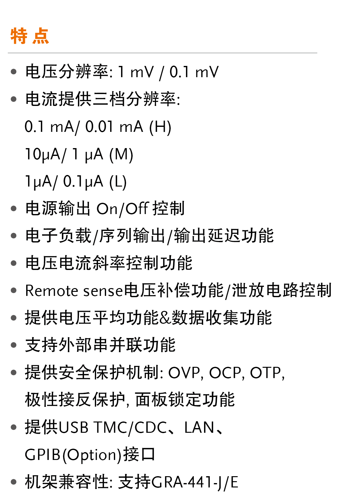 設(shè)定/回讀分辨率達 1 mV / 0.1 mV,提供精細的電壓控制。