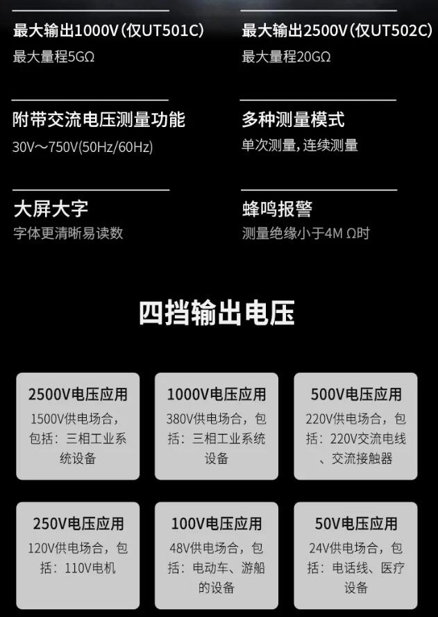 UT502C:(250V/500V/1000V/2500V)四檔可供選擇