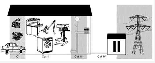 0- 無額定測量類別的儀器用于測量未直接連接到市電的電路,例如由電池供電或有特殊保護的二次電路供電的電路板,這種測量類別也叫做CAT I。