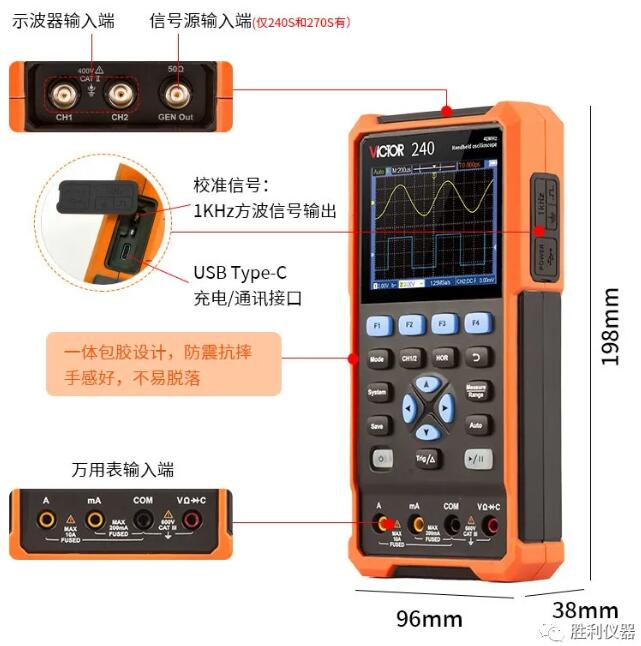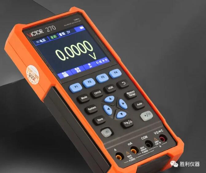 勝利儀器推出經(jīng)濟(jì)型雙通道手持式便攜示波表,這是一款示波器、萬用表、信號(hào)源三合一的儀器。這款雙通道彩屏手持式示波器具備小巧輕便、可單手持握、操作便捷等特點(diǎn)。
