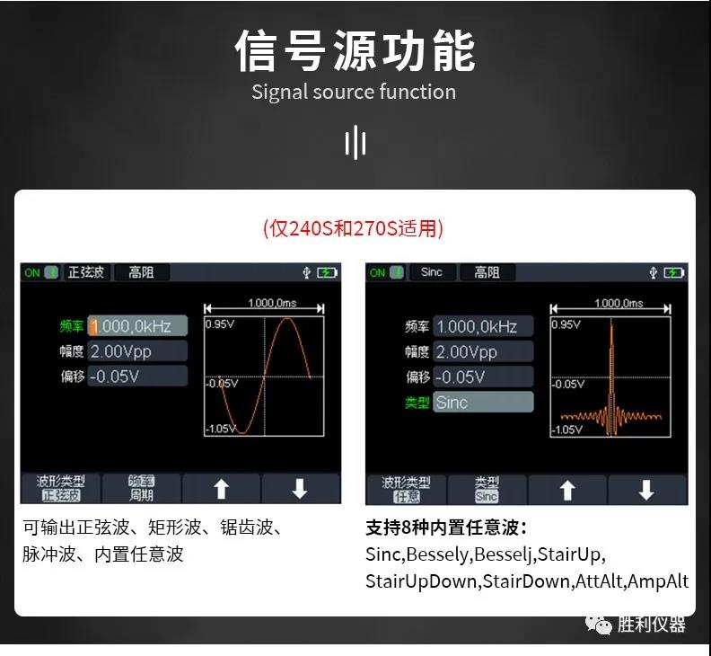 信號(hào)發(fā)生器(僅240S和270S適用):波形輸出頻率最大可到25MHz
