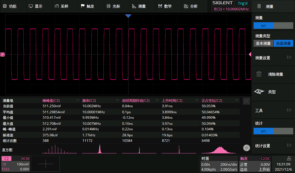 利用SDS2000X HD標(biāo)配的分析工具包,可多方面的分析時鐘信號質(zhì)量。