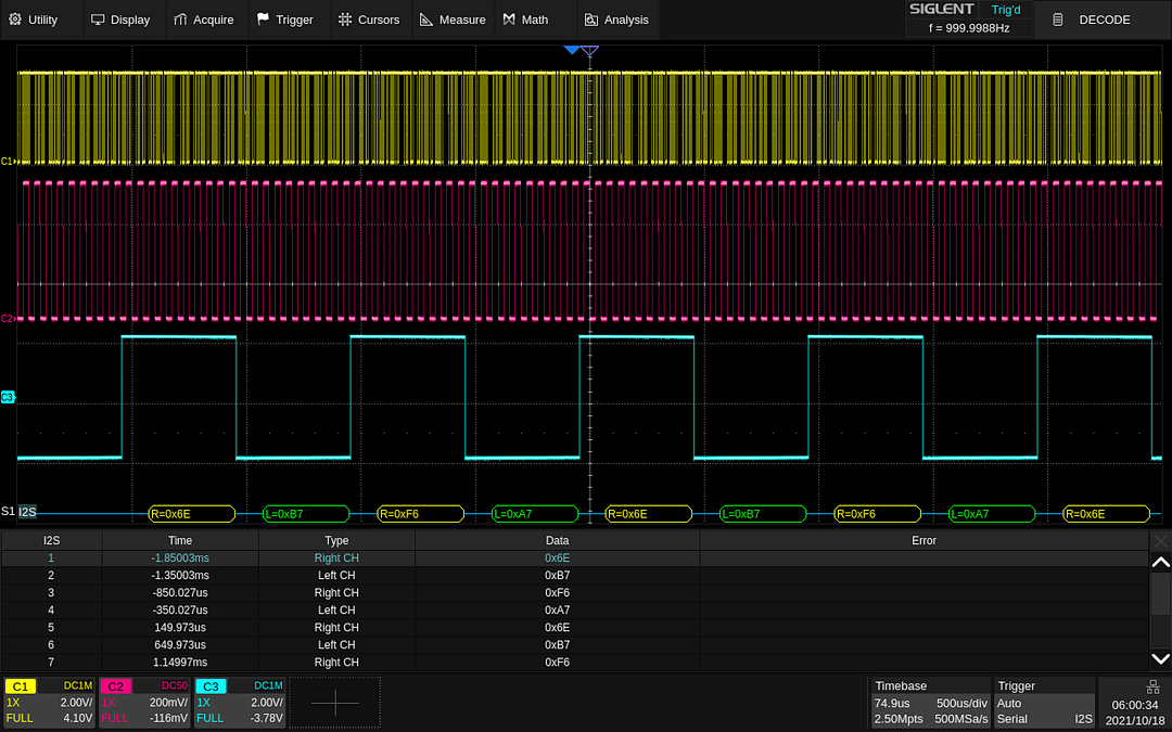 SDS2000X HD標(biāo)配了I2C、SPI、UART、CAN、LIN五種串行協(xié)議觸發(fā)及解碼,并可選配CAN FD、FlexRay、I2S、MIL-STD-1553B、SENT和Manchester等多種協(xié)議。通過事件列表顯示,能快速、直觀地將總線的協(xié)議信息以表格形式顯示,并能同時顯示2個總線解碼結(jié)果。