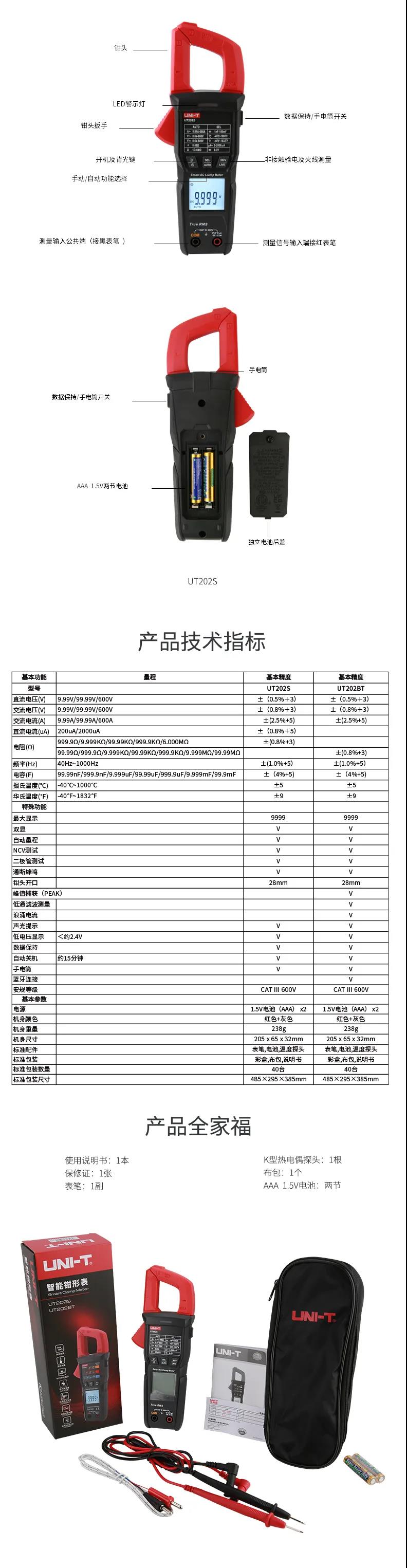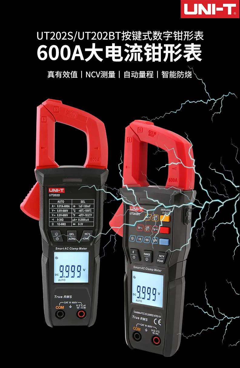 優(yōu)利德新品上市,推出UT202S/UT202BT按鍵式數(shù)字鉗形表。UT202S/UT202BT按鍵式數(shù)字鉗形表是一款600A大電流鉗形表,產(chǎn)品特點(diǎn)包括了真有效值、NCV測(cè)量、自動(dòng)量程、智能防燒等。