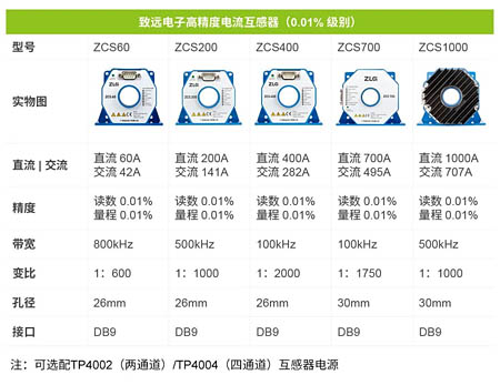 ZCS系列高精度電流互感器具備0.01%讀數(shù)精度,提供60A-1000A共5個量程版本。