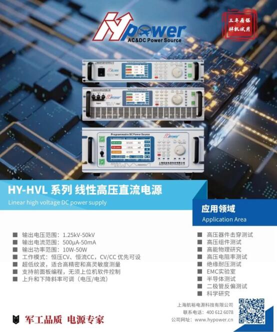 HY-HVL系列線(xiàn)性高壓直流電源,是航裕電源潛心研發(fā)的高科技新品。這款電源具有超低紋波,高精度和高靈敏度的優(yōu)勢(shì),輸出電壓最高達(dá)50kV,適用于高壓器件擊穿測(cè)試、高壓電阻率測(cè)試、絕緣耐壓測(cè)試、二極管反偏測(cè)試、高壓組件測(cè)試、半導(dǎo)體測(cè)試等科學(xué)研究。