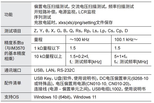 CN010電壓偏置測試系統(tǒng)由HIOKI日置LCR測試儀/阻抗分析儀、電壓偏置單元、電源及通訊設(shè)備構(gòu)成。具體可參考下文的參數(shù)規(guī)格。