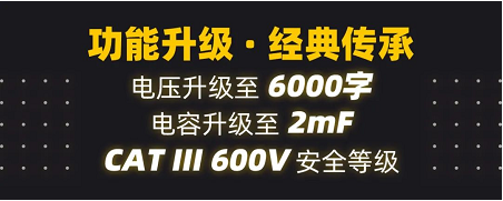 電壓升級至6000字,電容升級至2mF,CAT III 1600V安全等級