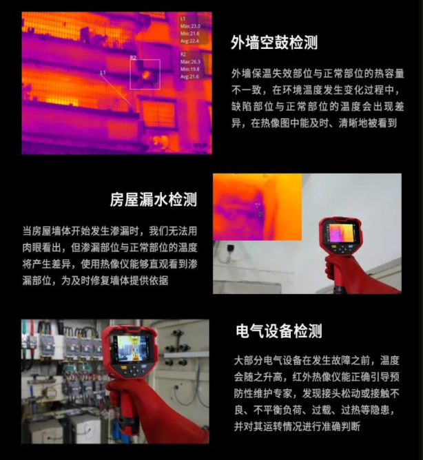 產(chǎn)品可應(yīng)用于外墻空鼓檢測(cè)、房屋漏水檢測(cè)、電氣設(shè)備檢測(cè)、汽車發(fā)動(dòng)機(jī)檢測(cè)、汽車輪胎檢測(cè)等場(chǎng)景。