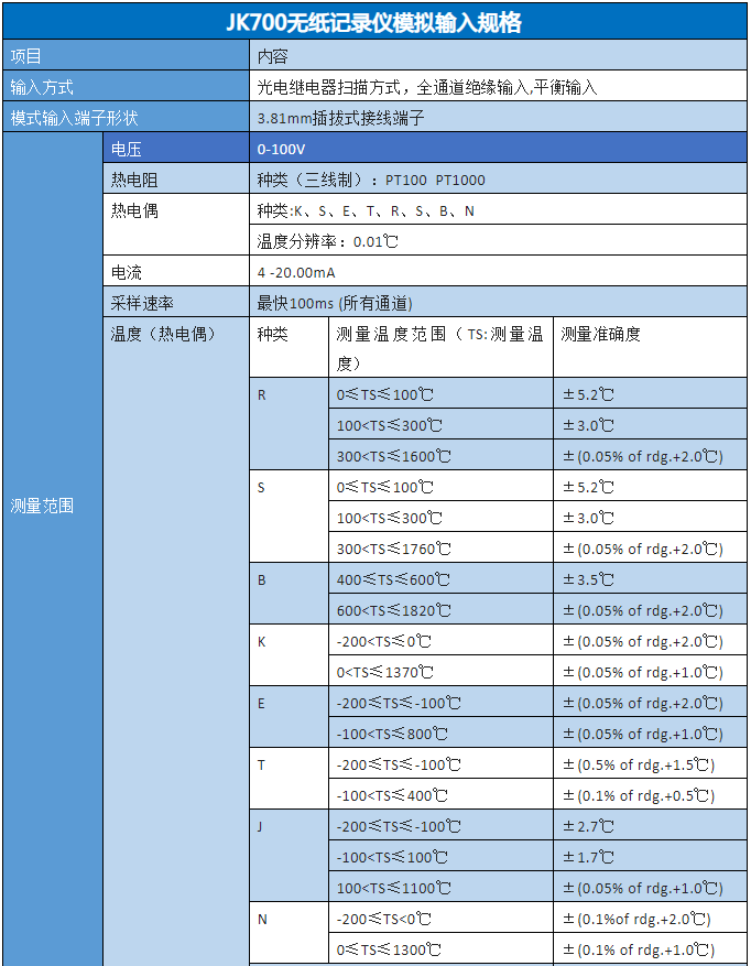4.熱電偶∶B、S、K、E、T、J、R、N、