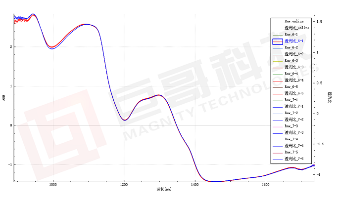 使用臺式光譜儀對來自兩個產(chǎn)地的六個品牌大米進行光譜采集,下圖中藍線產(chǎn)地為東北五常,紅線產(chǎn)地為江蘇泰州。
