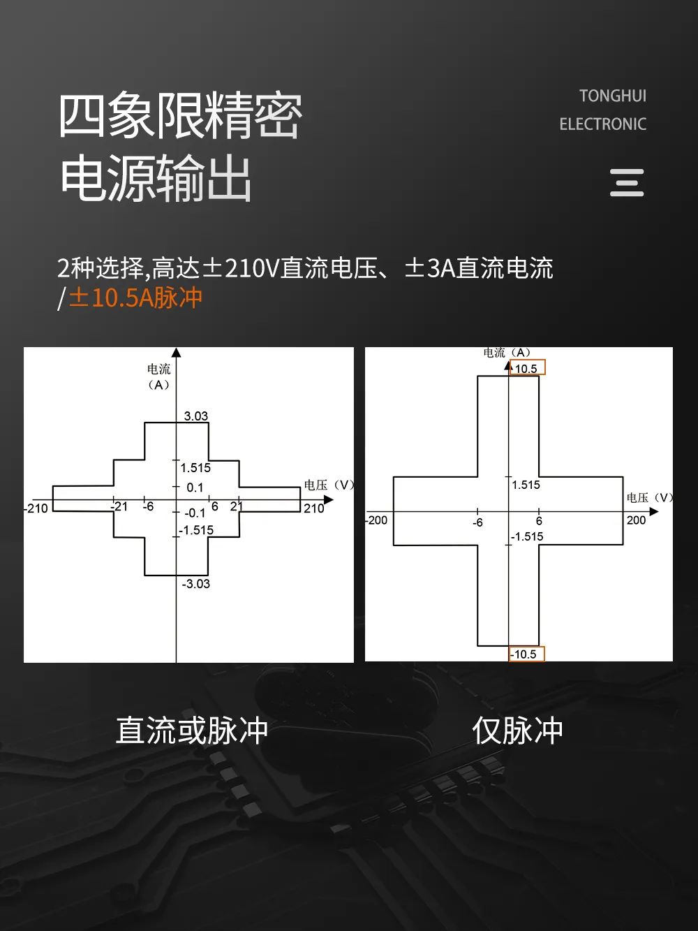 作為主控的TH1991/TH1992系列不僅集成了Force Voltage和Force Current的環(huán)路控制以及鉗位功能,同時內部也集成多個range的shunt電阻可以實現多檔位的電流測量,可輸出高達±210V直流電壓、±3A直流電流以及±10.5A脈沖電流、最小10fA/100nV的電源和測量分辨率,支持高速采樣,可生成任意波形。
