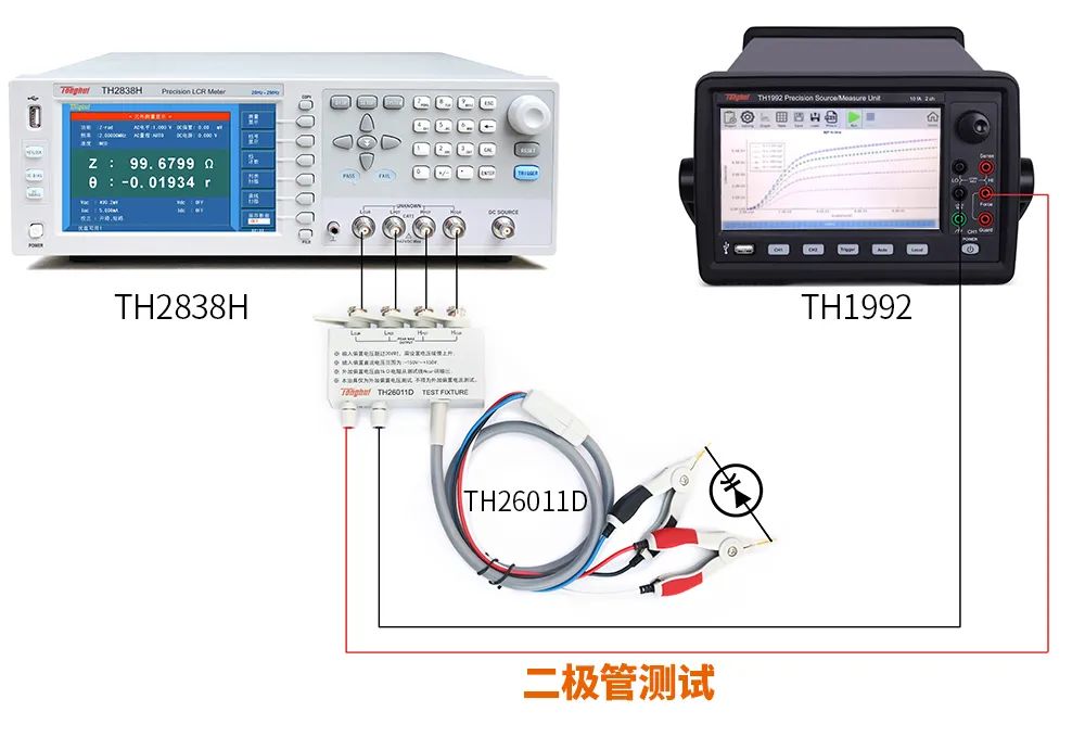 同惠TH2838H精密LCR數字電橋結合TH1991系列精密源/測量單元完美的解決了這個問題,可提供20Hz-2MHz測試頻率范圍,±200V正反向電壓下的測試需求。具體方案如下: