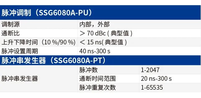 SSG6000A標(biāo)配了高精度時(shí)鐘源,可選配安裝脈沖調(diào)制、脈沖發(fā)生器以及脈沖串發(fā)生器,可輸出最低寬度為20ns的脈沖,且分辨率可達(dá)10ns,能充分滿足汽車毫米波雷達(dá)系統(tǒng)測(cè)試。