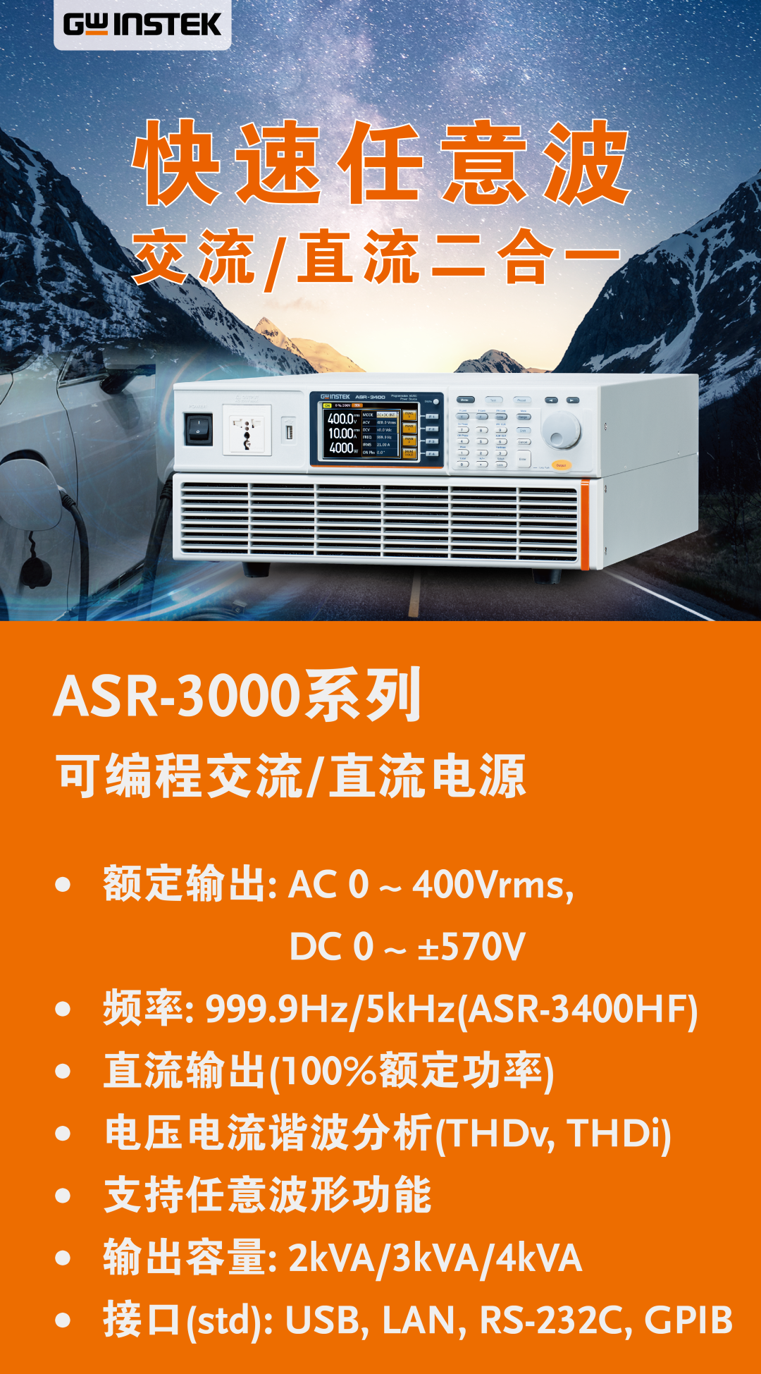 ASR-3000系列是開(kāi)發(fā)車(chē)載充電器、服務(wù)器電源、LED模塊、交流電機(jī)、交流風(fēng)扇、UPS和各種電子元件以及測(cè)試汽車(chē)電氣設(shè)備和家用電器應(yīng)用的理想選擇。