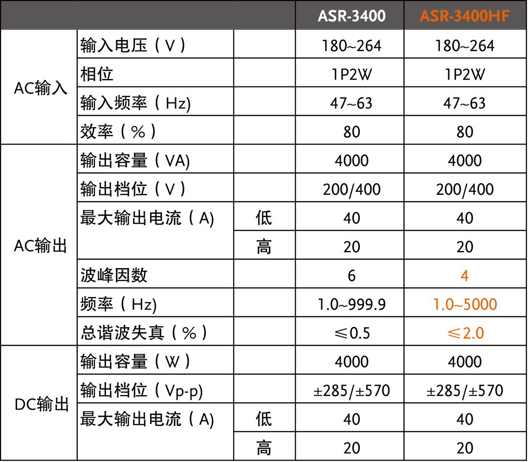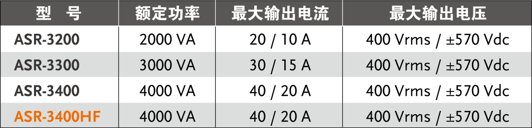 ASR-3400HF的交流輸出頻率高達(dá)5kHz,適用于航空電子設(shè)備,可在400Hz、800Hz或高達(dá)5,000Hz的頻率下進(jìn)行耐受性測(cè)試。
