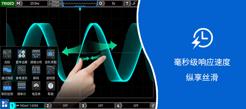 MSO3000CS系列搭載優(yōu)利德自研超級熒光顯示技術(shù)Ultra Phosphor2.0,采用全新的硬件架構(gòu)和軟件算法設(shè)計,面向半導(dǎo)體研發(fā)、集成電路設(shè)計、新能源等眾多新興前沿技術(shù)領(lǐng)域提供高性能測試測量功能技術(shù)支持。