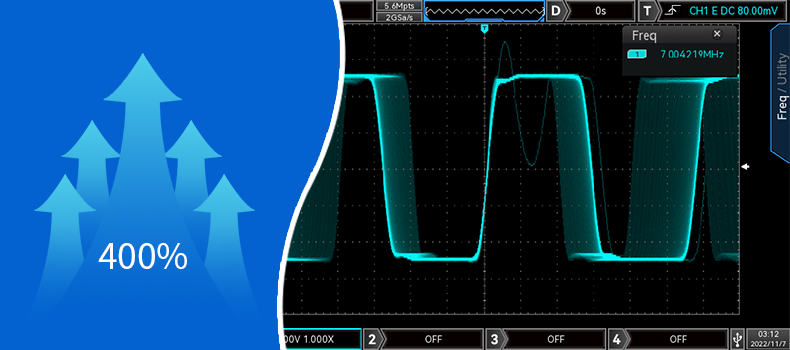 *以上數(shù)據(jù)對比對象為:本公司原有機型-MSO3000CS(200MHz/100MHz)