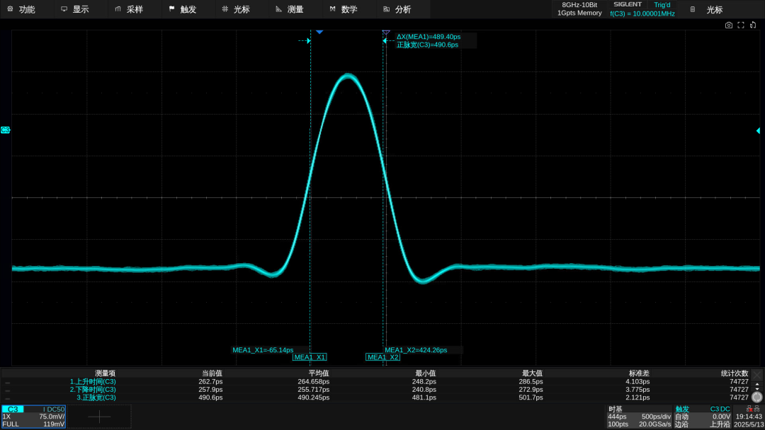得益于高數(shù)據(jù)率,SDG8000A 可輸出脈寬低至250 ps的窄脈沖,可滿足芯片、汽車行業(yè)等大多數(shù)脈沖測試場景需求。與此同時,SDG8000A還搭載了EasyPulse技術(shù),在輸出方波與脈沖信號時,可實現(xiàn)極低抖動,同時支持脈寬、上升/下降沿的精細調(diào)節(jié),滿足對高速數(shù)字信號、高精度脈沖的嚴格需求。