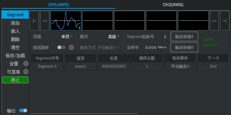 SDG8000A系列每通道最大存儲深度達4G樣本點,即使在最高采樣率下也能支持長達800 ms的波形回放。