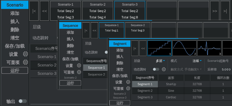 不僅如此,該系列提供強大的多層級波形序列播放功能,包括:Segment、Sequence、Scenario,儀器內(nèi)置196種任意波形,涵蓋數(shù)學、工程、醫(yī)療電子、調(diào)制等領(lǐng)域,用戶可根據(jù)需求直接調(diào)用或自定義編輯波形文件,從而快速適應各種測試任務。