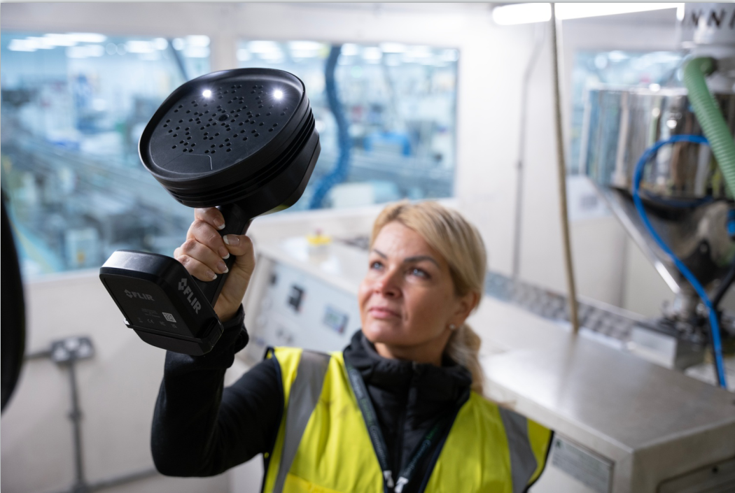 全新FLIR Si1-LD搭載了96枚高性能麥克風(fēng)陣列,覆蓋2 kHz至100 kHz的寬頻范圍,這一配置使其能夠在最遠130米的距離外自動捕捉并精準定位壓縮氣體和真空泄漏。