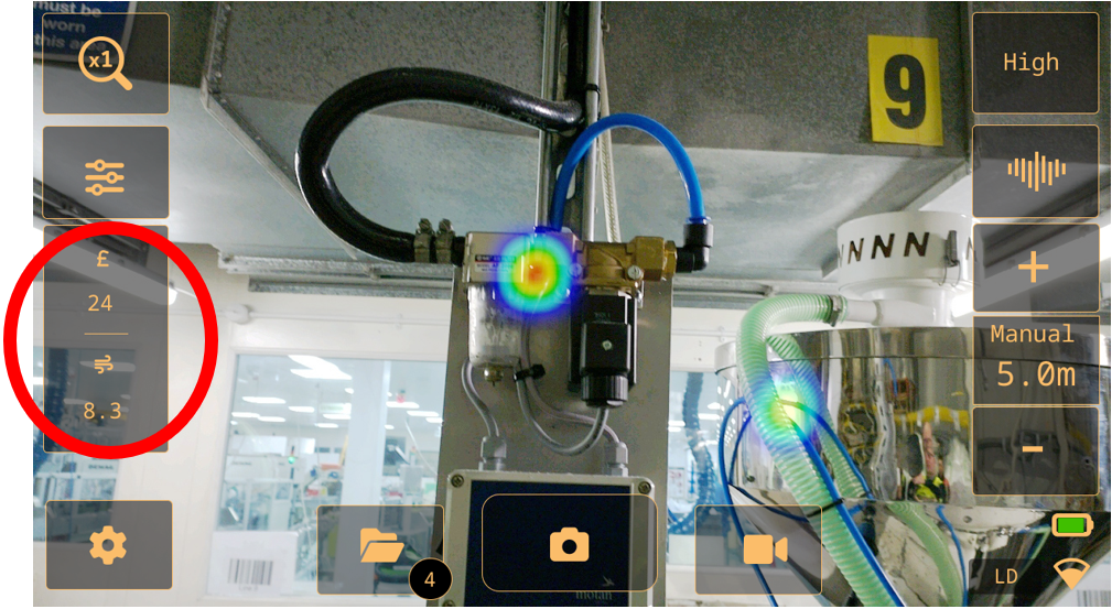 FLIR Si1-LD的觸摸屏界面不僅直觀易用,更集成了實時量化與分析功能。在檢測過程中,泄漏率和成本損失預(yù)估會實時顯示在屏幕上,為檢測人員提供即時的決策依據(jù)。這一功能使得用戶能夠迅速判斷泄漏的嚴重程度,并據(jù)此制定合理的維修計劃。