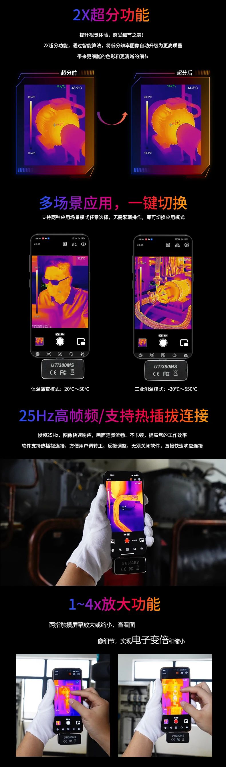 優(yōu)利德UTi380MS手機熱像儀小巧便攜,易于使用,只需安裝配套的手機APP并連接設(shè)備,即可實現(xiàn)即插即用,輕松開啟熱成像檢測之旅。