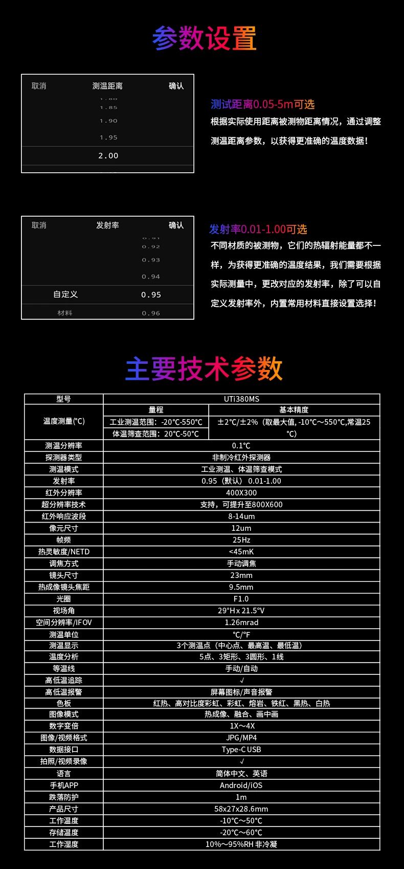 產(chǎn)品擁有400*300像素的紅外分辨率,并配備手動調(diào)焦和2X超分辨率功能,確保圖像清晰、細節(jié)豐富。25Hz的幀頻,確保畫面響應(yīng)迅速、流暢連貫。測溫范圍為-20~550℃ ,支持工業(yè)測溫和體溫篩查兩種模式,用戶可根據(jù)實際需求一鍵切換。此外,產(chǎn)品還具有鏡像顯示、手動等溫、中心點測溫、高低溫追蹤、高低溫聲音報警、拍照與錄像存儲等實用功能……以上種種功能特點,使其可廣泛應(yīng)用于配電柜檢測、電子電路板檢測、暖通空調(diào)檢測、房屋內(nèi)外熱源隱患檢測、發(fā)熱管檢測等,是工業(yè)巡檢和居家旅行的“第三只眼”。