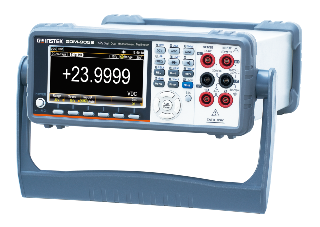 除了AC/DC電壓、AC/DC電流、AC+DC電壓/電流、2線/4線電阻、頻率、溫度測量、短路蜂鳴和二極管測試等基本測量項目外,GDM-9052還配備了電容測量功能。此外,GDM-9052 還提供許多數(shù)學(xué)功能,包括最大值/最小值、dB、dBm、比較、讀數(shù)保持、數(shù)學(xué)計算(MX+B、1/X、%)等,以滿足制造工藝測試、教學(xué)實驗和檢測設(shè)備的測量需求。