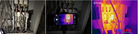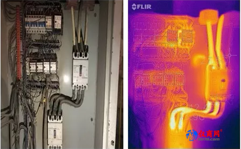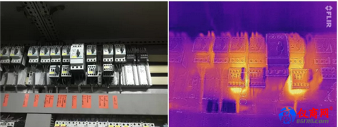 使用熱像儀巡檢低壓柜內(nèi)電源開關(guān)線是否有虛連,松動等現(xiàn)象,避免發(fā)生缺相,造成其它用電設(shè)備損壞的發(fā)生。