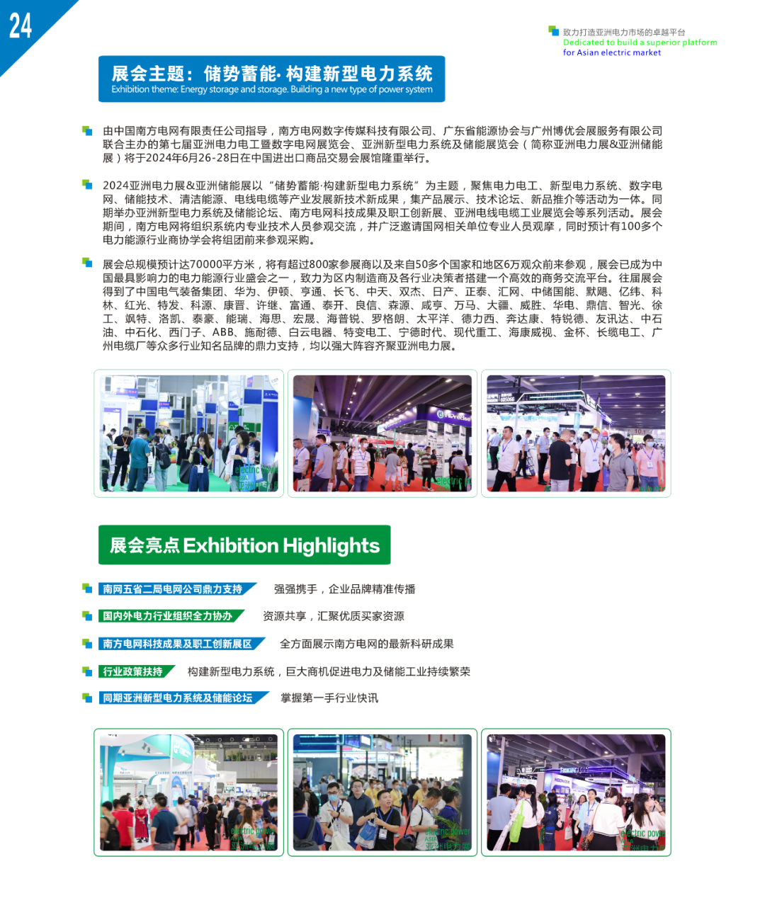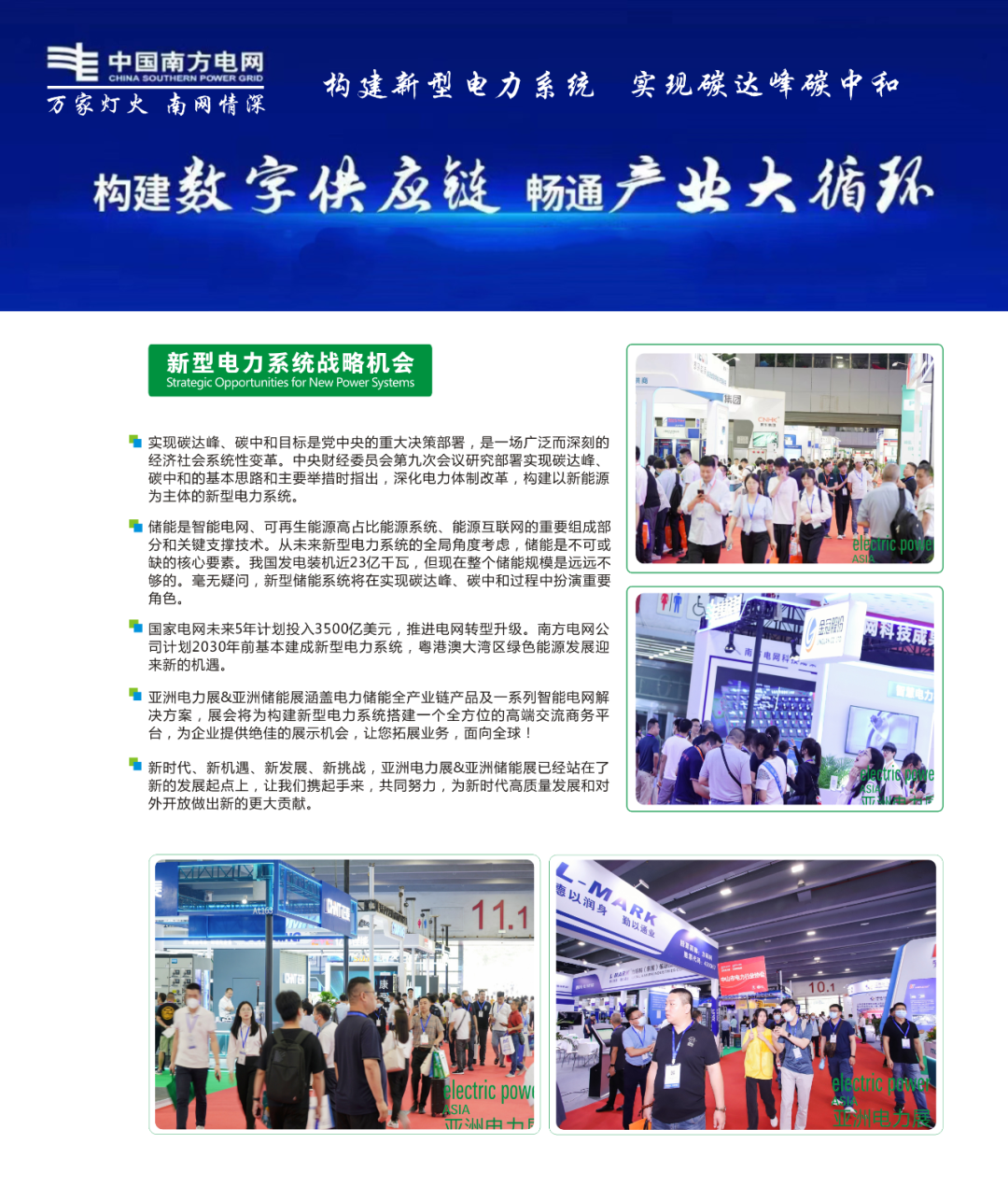 由中國(guó)南方電網(wǎng)有限責(zé)任公司指導(dǎo),南方電網(wǎng)數(shù)字傳媒科技有限公司、廣東省能源協(xié)會(huì)、廣州博優(yōu)會(huì)展服務(wù)有限公司聯(lián)合主辦的2024第七屆亞洲電力電工暨數(shù)字電網(wǎng)展覽會(huì)、亞洲新型電力系統(tǒng)及儲(chǔ)能展覽會(huì)將為能源領(lǐng)域提供領(lǐng)先的前瞻資訊、技術(shù)交流、市場(chǎng)解決方案和投資機(jī)會(huì)。展會(huì)將于2024年6月26日至28日在廣州“中國(guó)進(jìn)出口商品交易會(huì)展館”舉行,面向全球觀眾集中展示電力及儲(chǔ)能行業(yè)的新產(chǎn)品、新技術(shù)、新趨勢(shì)、新應(yīng)用。