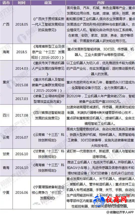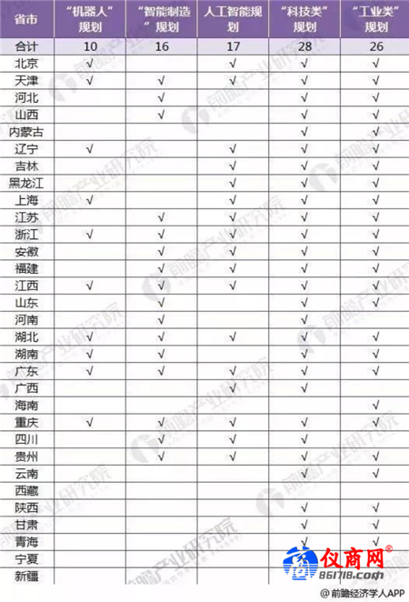 圖表6:各省市涉及到機器人的相關規(guī)劃匯總