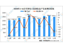 據(jù)中商產(chǎn)業(yè)研究院數(shù)據(jù)庫顯示,2020年11月全國電工儀器儀表產(chǎn)量為2474.1萬臺,同比下降21.1%。2020年1-11月全國電工儀器儀表產(chǎn)量為23749.3萬臺,同比下降5.7%。數(shù)據(jù)來源:中商產(chǎn)業(yè)研究院數(shù)據(jù)庫2020年1-11月全國電工儀