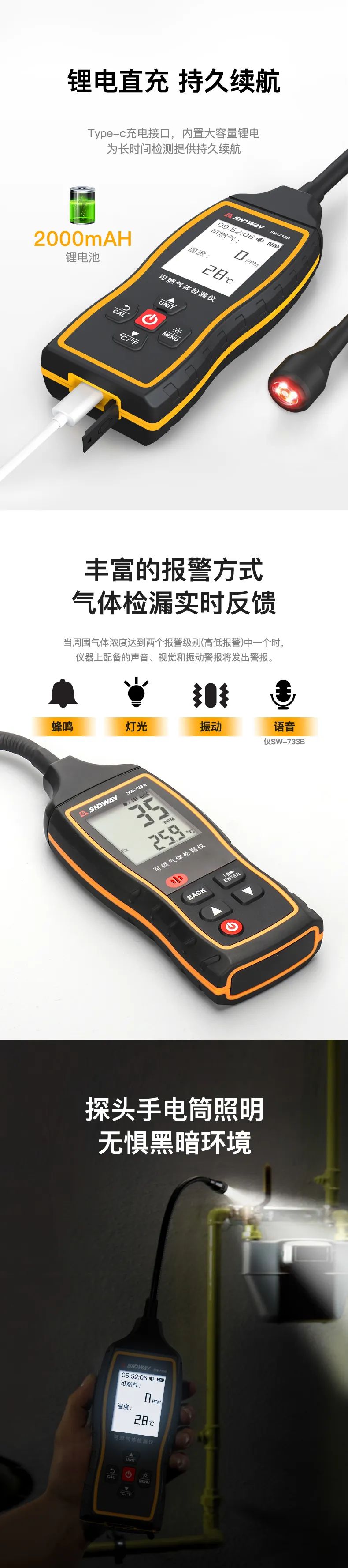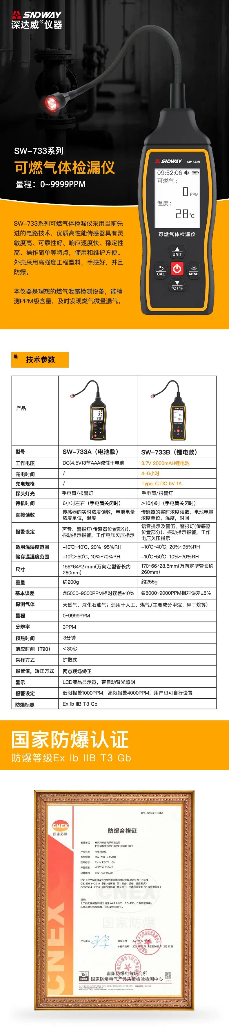 SW-733系列可燃?xì)怏w檢漏儀是一款理想的燃?xì)庑孤稒z測設(shè)備,能檢測PPM級含量,及時發(fā)現(xiàn)燃?xì)馕⒘柯?。量程范圍可覆蓋0~9999PPM。