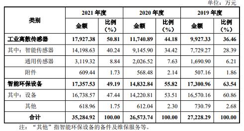 蘭寶傳感的營收來源于工業(yè)離散傳感器和智能環(huán)保設(shè)備兩大板塊業(yè)務(wù).