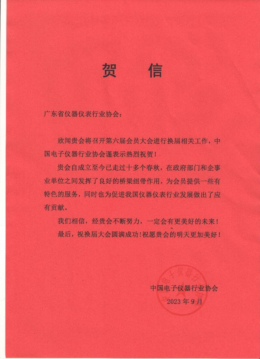 (中國(guó)電子儀器行業(yè)協(xié)會(huì)賀信)
