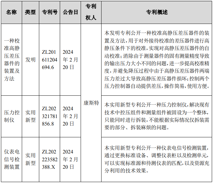 康斯特表示,上述專利涉及公司的校準測試產(chǎn)品業(yè)務(wù),是公司整體校準測試技術(shù)的拓展與延伸,專利的取得不會對公司近期生產(chǎn)經(jīng)營產(chǎn)生重大影響,但可以進一步提高產(chǎn)品的性能及效率。作為國家知識產(chǎn)權(quán)優(yōu)勢企業(yè),相關(guān)專利是公司有效運用知識產(chǎn)權(quán)的舉措之一,并有利于完善公司的持續(xù)創(chuàng)新機制,形成知識產(chǎn)權(quán)與商業(yè)秘密保護矩陣,提升公司的核心競爭力。