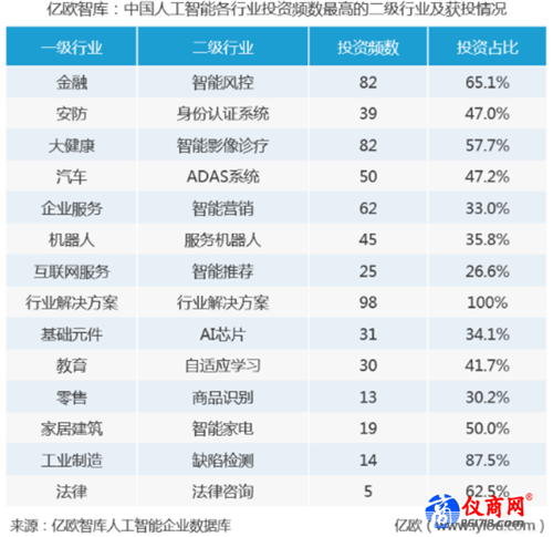 七年來(lái),2018年中國(guó)私募股權(quán)投資市場(chǎng)中,人工智能領(lǐng)域相關(guān)投資額約¥3658.6億。千億資金究竟流向了何處?在人工智能應(yīng)用觸達(dá)的各個(gè)行業(yè)中,哪些細(xì)分領(lǐng)域最受資本追捧?在億歐智庫(kù)最新推出的《2018中國(guó)人工智能投資市場(chǎng)研究報(bào)告》中,對(duì)金融、安防、大健康等14個(gè)行業(yè)中最受追捧的二級(jí)行業(yè)進(jìn)行了挖掘,如下圖所示。
