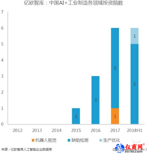 在工業(yè)制造領(lǐng)域,人工智能主要有三大應(yīng)用:機(jī)器人視覺、缺陷檢測(cè)和生產(chǎn)優(yōu)化。其中,缺陷檢測(cè)領(lǐng)域共獲投14次,占AI+工業(yè)制造全領(lǐng)域投資的87.5%。