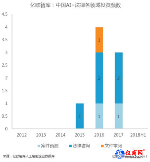 目前法律領(lǐng)域的人工智能應(yīng)用還相對(duì)較少,獲投較多的應(yīng)用方向是法律咨詢,其本質(zhì)是法律領(lǐng)域的智能客服。此外,在案件預(yù)測(cè)、文件審閱方面,也有幾家企業(yè)獲得融資。
