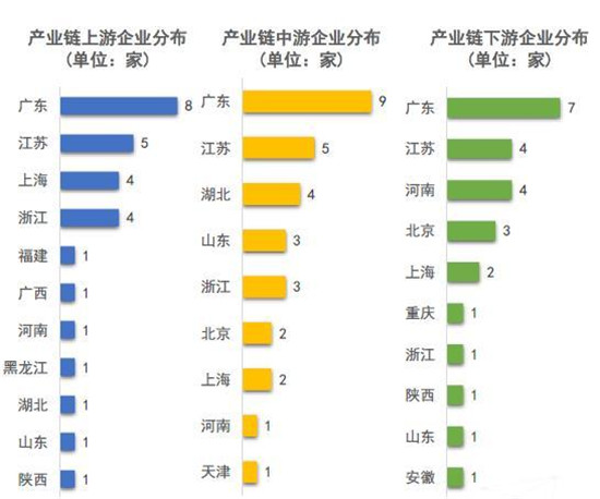 廣東企業(yè)數(shù)量最集中,中游上市公司扎堆