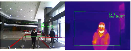 傳統(tǒng)紅外熱成像測(cè)溫儀存在誤識(shí)別其他高溫物體,如手機(jī)、充電寶的情況,或者在大量人員通行相互遮擋時(shí)容易漏檢或者難于確認(rèn)超溫目標(biāo)。??低暉岢上裨趥鹘y(tǒng)熱成像的基礎(chǔ)上進(jìn)行優(yōu)化,加入人臉檢測(cè)技術(shù),只檢測(cè)人臉區(qū)域溫度。這樣就能可以避免大量的其他高溫物體帶來的誤報(bào)影響。