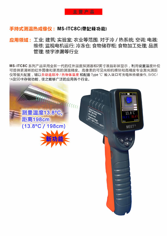 由于需求迅速增長(zhǎng),MEET于1994年起已在國(guó)內(nèi)設(shè)置工廠,致力于研發(fā)并生產(chǎn)各式多功能電子測(cè)試儀,如多功能電筆、電池測(cè)試器、金屬探測(cè)器、墻壁探測(cè)器、插針或感應(yīng)式水分探測(cè)器 (適用于木頭、建材、紙張、布料、粉末等) 皮膚水分測(cè)試儀、氣體泄漏傳感器、UV紫外線測(cè)試儀、激光測(cè)距儀、剎車油水分測(cè)試器、室內(nèi)外溫度計(jì)。此外還有相對(duì)精密,更為專業(yè)的數(shù)字萬(wàn)能表、鉗表、激光測(cè)距儀(可測(cè)遠(yuǎn)至30-150米)、遠(yuǎn)紅外線測(cè)溫儀等等。適合家居、電工、裝修、專業(yè)測(cè)量用途,更可用作教學(xué)工具及禮品。產(chǎn)品通過(guò)安全監(jiān)測(cè)認(rèn)證,值得信賴。
