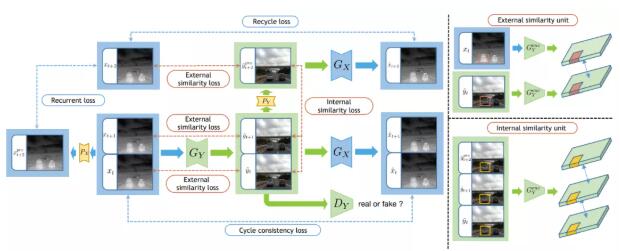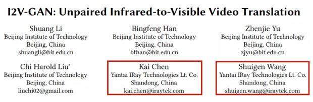 艾睿光電人工智能與機(jī)器人實(shí)驗(yàn)室與北理工李爽博士課題組合作,提出紅外視頻真彩轉(zhuǎn)換算法I2V-GAN,能夠?qū)⒄鎸?shí)場景紅外熱成像視頻轉(zhuǎn)換成彩色可見光視頻,相關(guān)論文被ACM MM2021接收。我們也在第一時(shí)間開源了論文代碼和數(shù)據(jù)集,如下所示是論文基本信息、下載地址、代碼與數(shù)據(jù)集下載地址和I2V-GAN算法整體框圖。