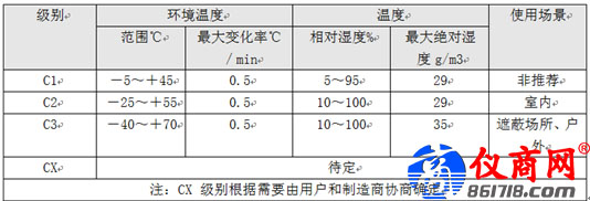 環(huán)境溫度及濕度要求詳情見表1